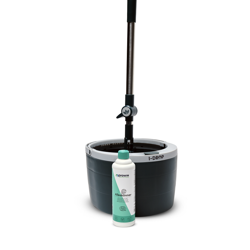 I-DROP, das revolutionäre Reinigungssystem mit zwei verschiedenen Funktionsebenen. Die praktische Doppelkammer trennt das Reinigungs- vom Schmutzwasser und der Kontakt der Hände sowie der verwendeten Reinigungsfaser mit schmutzigem Wasser wird vermieden. Durch Druck des Wischtellers von oben wird die Rotation in Gang gesetzt. Beim Befeuchten der runden Bodenfaser wird diese gleichzeitig durch die angebrachten Bürsten gereinigt und z.B. Haare effektiv entfernt. Mit der zweiten Funktion wird die Faser durch die Rotationskraft getrocknet. Der Schmutzwassertank kann separat durch kleine Ausschüttöffnungen oder den seitlichen Ablauf entleert werden, ohne dabei das Frischwasser zu verlieren. Bei dem Frischwassertank handelt es sich um ein geschlossenes System, dieser kann somit ideal über mehrere Tage verwendet werden und der I-DROP ist bei Bedarf wieder schnell zur Hand. Der Wasserbedarf zur Bodenreinigung reduziert sich auf ein Minimum, da die Bodenfaser dosiert befeuchtet wird und kein komplettes Eintauchen mehr notwendig ist. Die Putzwassermenge und die Menge des jeweils verwendeten Reinigungsmittels können zudem individuell je nach Putzfläche dosiert werden. Dieser sparsame Einsatz schont wertvolle Ressourcen und die einfache, komfortable Bedienung machen das Reinigungssystem unverzichtbar für jeden Haushalt.